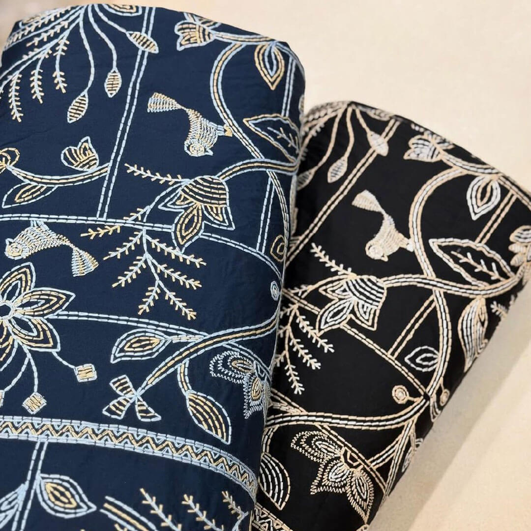 پوپلین کوکدوزی طرح پرنده-2رنگ