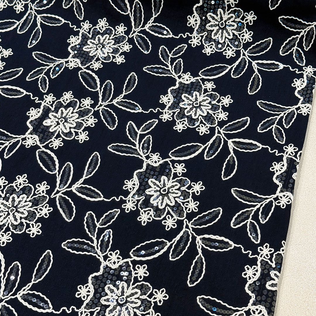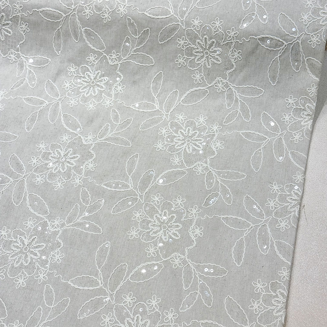 لینن سرمهدوزی گلدار پولکی-3رنگ