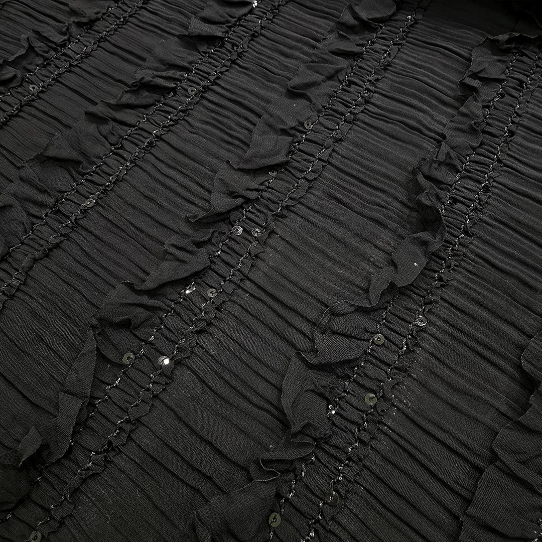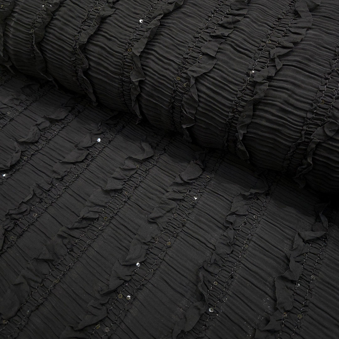 حریرپلیسه رباندوزی مشکی-طرح2