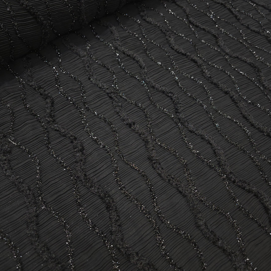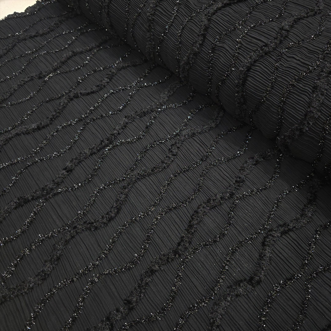 حریرپلیسه رباندوزی مشکی-طرح1