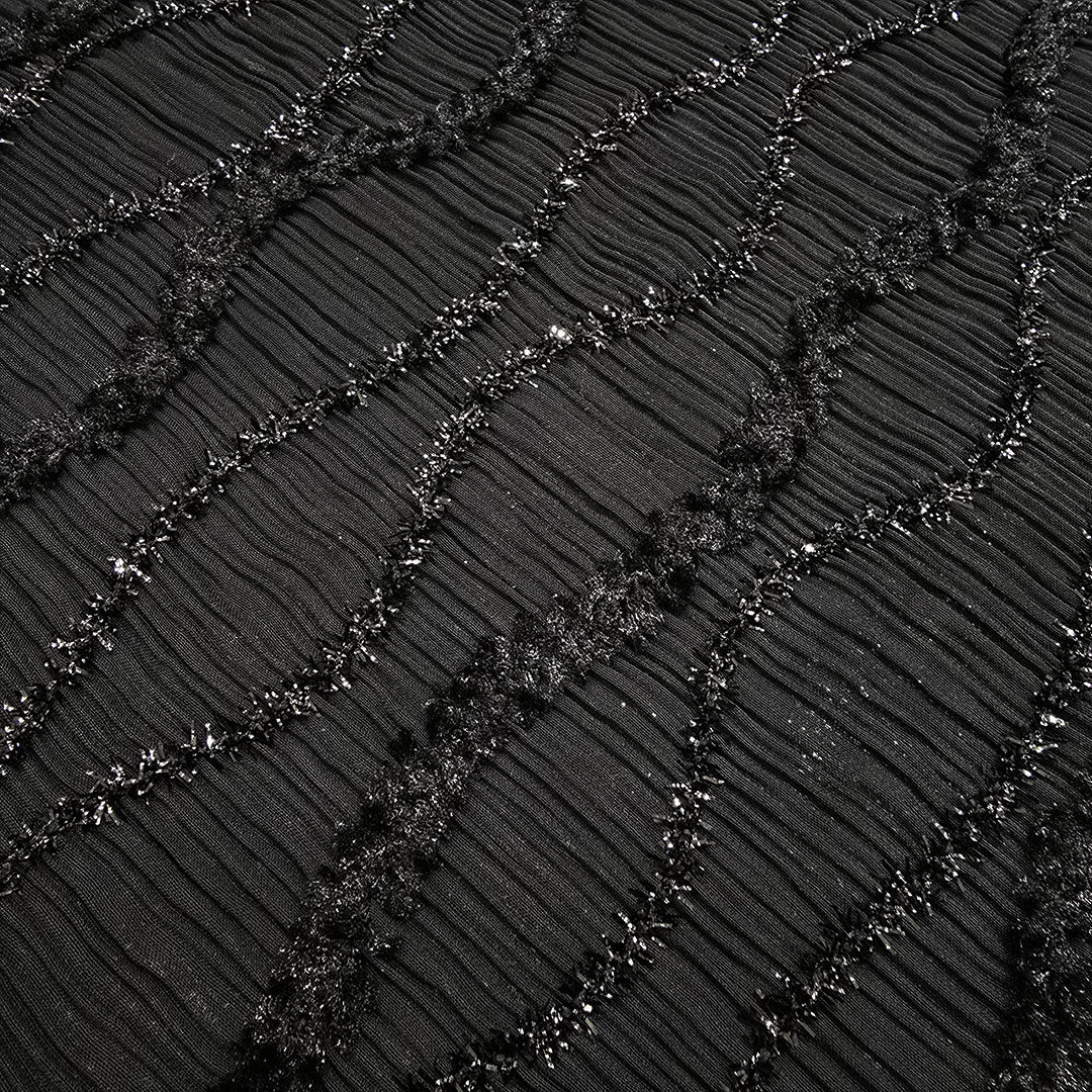 حریرپلیسه رباندوزی مشکی-طرح2
